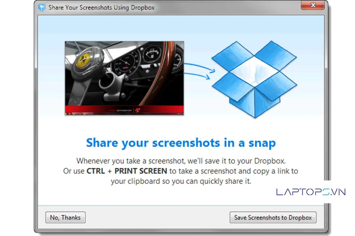 - Ảnh được chụp và tự động tải lên tài khoản Dropbox, đồng thời một đường link chia sẻ sẽ được sao chép vào clipboard để bạn gửi cho người khác.
