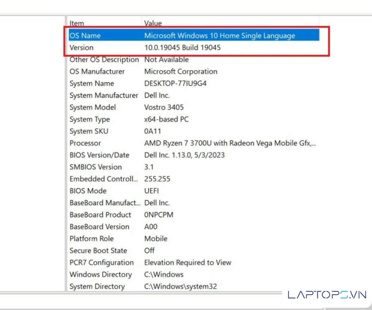 - 3. Cửa sổ này cung cấp một cái nhìn cực kỳ chi tiết về mọi thứ, từ tên hệ điều hành (OS Name) đến loại hệ thống (System Type).