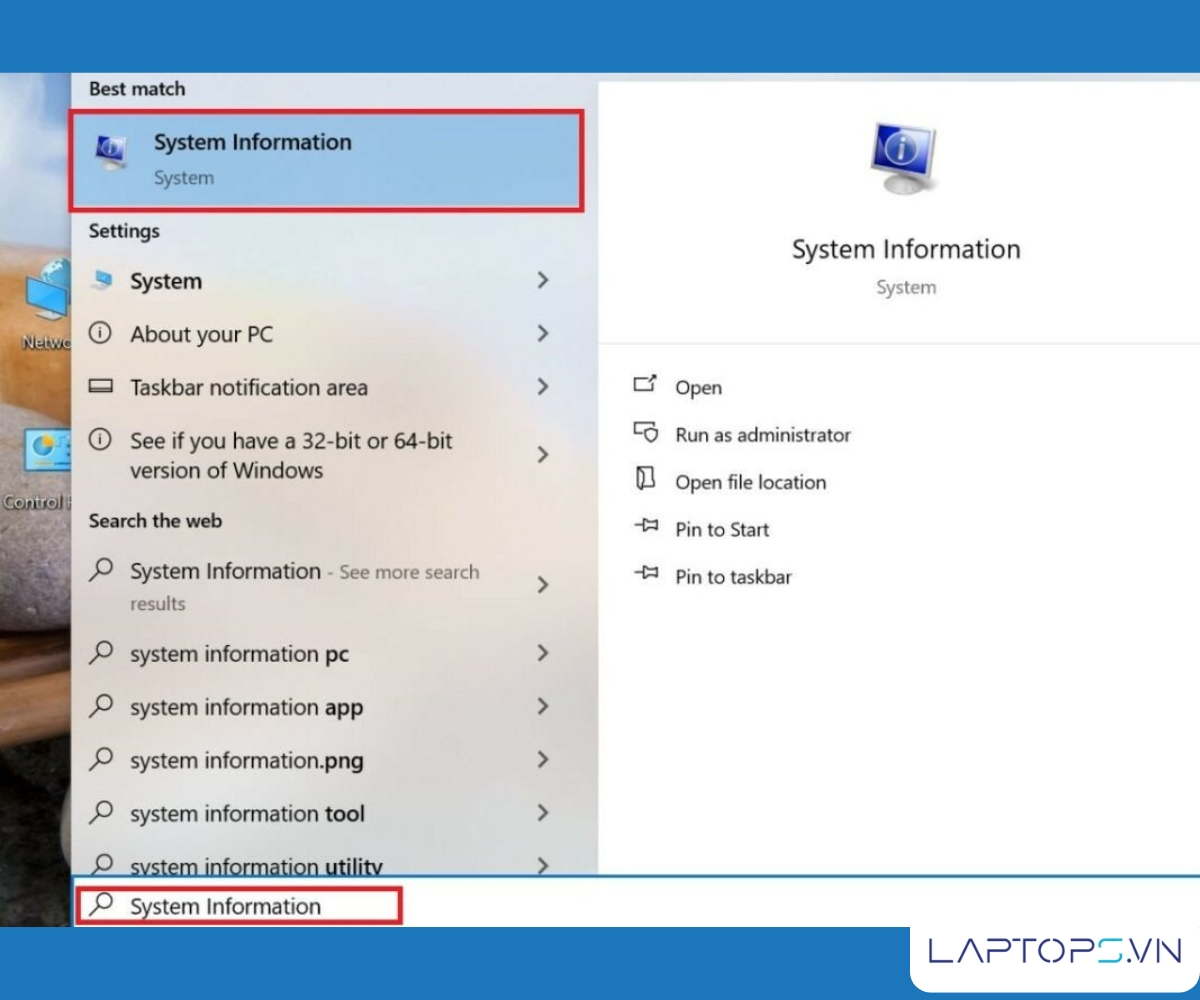 - 2. Gõ System Information và mở ứng dụng tương ứng.