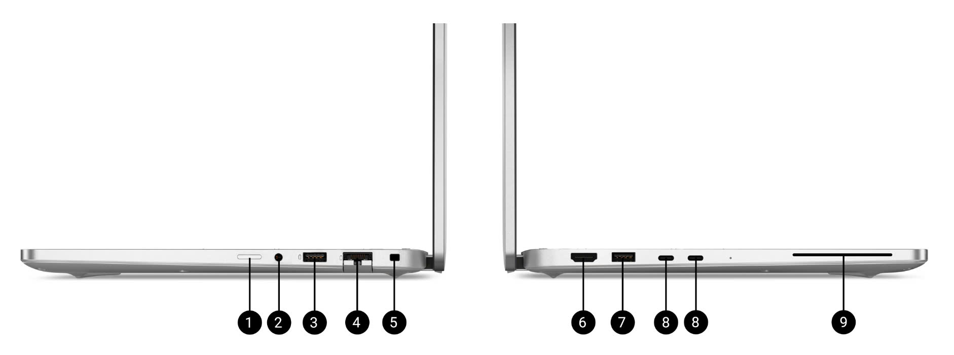 Dell Pro 14 Plus PB14255 được trang bị hệ thống cổng kết nối đa dạng, phục vụ tốt nhu cầu của doanh nghiệp. Người dùng có 2 cổng USB-C Thunderbolt 4/USB4 hỗ trợ Power Delivery và DisplayPort, 2 cổng USB-A 3.2 Gen1/Gen2, HDMI 2.1, jack 3.5mm, khe sim/SmartCard và tùy chọn RJ45 LAN. Những trang bị này đảm bảo khả năng kết nối với hầu hết các thiết bị ngoại vi hiện nay, từ màn hình rời, máy chiếu đến ổ cứng di động.