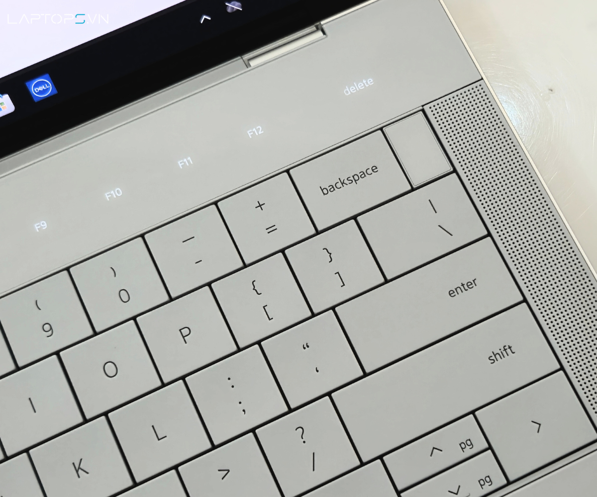- Bàn phím: Thiết kế tràn viền không khoảng hở độc đáo, keycaps phẳng nhưng nịnh tay cho trải nghiệm gõ cực kỳ êm ái, yên tĩnh. Dù hành trình phím ngắn, độ phản hồi tốt giúp việc gõ nhanh vẫn rất chính xác. Bàn phím có đèn nền và dãy phím function cảm ứng LED hiện đại, tích hợp cả phím Copilot chuyên dụng.